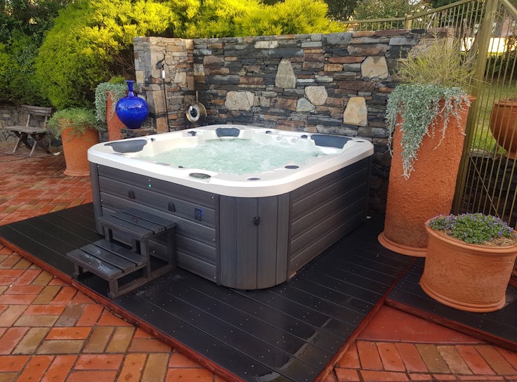 A Titanium spa as a feature in the backyard.