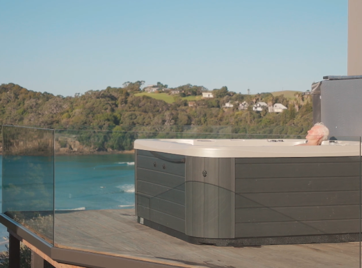 This spa installation at Ian Ferguson’s Mangawhai Heads home shows how frameless glass fencing and timber decking can work together to support both safety and style in an elevated setting. Set to capture the coastal aspect, the spa placement makes the most of the view while keeping the outdoor area open and connected.