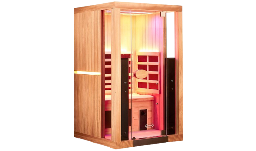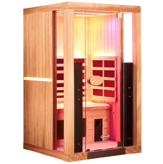Transform your home with the Jacuzzi® 1-person infrared sauna, your personal haven for rest, relaxation, and restoration. This innovative sauna combines infrared heat, red light therapy, and vibrational resonance to promote overall well-being.