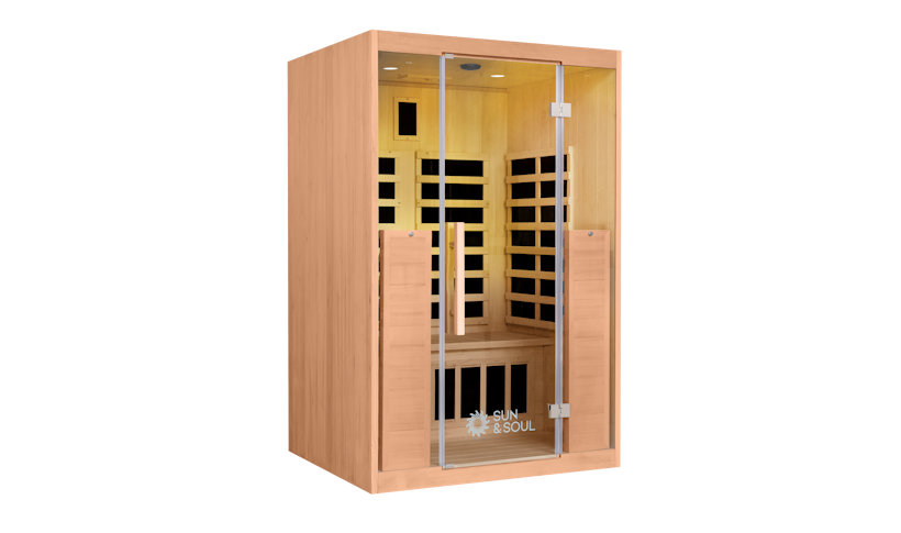 Experience ultimate relaxation with the SUN200™ 2-Person Infrared Sauna from Sun & Soul™. This beautifully crafted sauna features low-EMF carbon heaters for consistent, deep heat, along with durable spruce wood design for warmth and style.