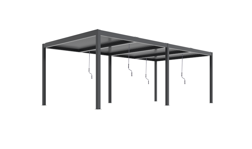 This model is identical in quality to its motorised sibling, boasting heavy-duty aluminum construction and a verstale lourvered roof. However instead of automatic louvres, it is manually operated with integrated crank handles, making it a more affordable option.