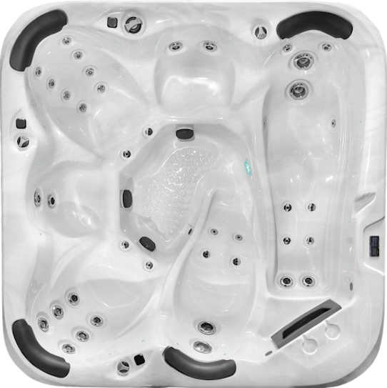 The Fisher 7™ features two luxurious recliners, six full-size seats, and 40 jets powered by a SmartFlow pump for relaxation and recovery. Its thoughtful design maximises space and usability, making it perfect for large families.