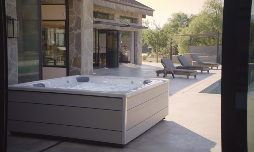 The J-LX® Collection boasts a full-featured modern design, with geometric forms that enhance outdoor spaces through crisp lines and dramatic exterior lighting. Inside, a gentle waterfall captivates the senses, delivering a soothing and transformative experience.