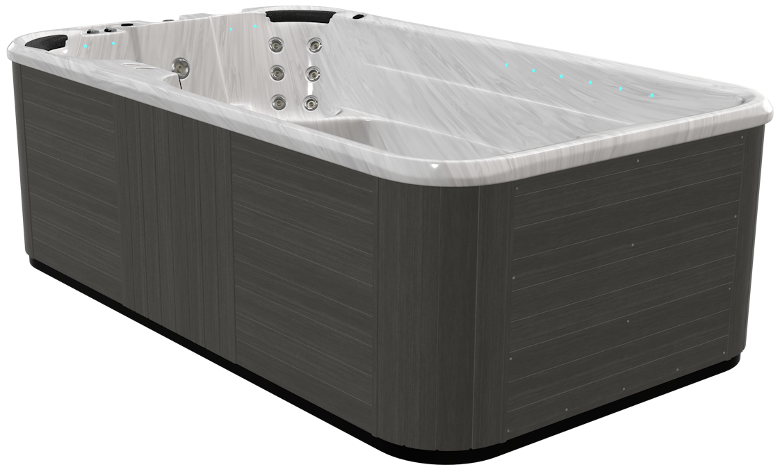 The Fisher Play™ plunge pool combines quality and affordability, featuring two hydromassage seats for relaxation and a spacious plunge zone for fitness, fun, and cooling off. Optional swim pole and harness upgrades transform it into a training pool for swimming or water walking.